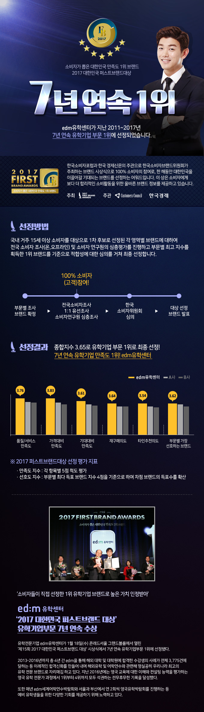 ed:m은 2017년에 소비자의 만족도와 선호도를 평가한 퍼스트 브랜드 대상을 수상하였습니다.