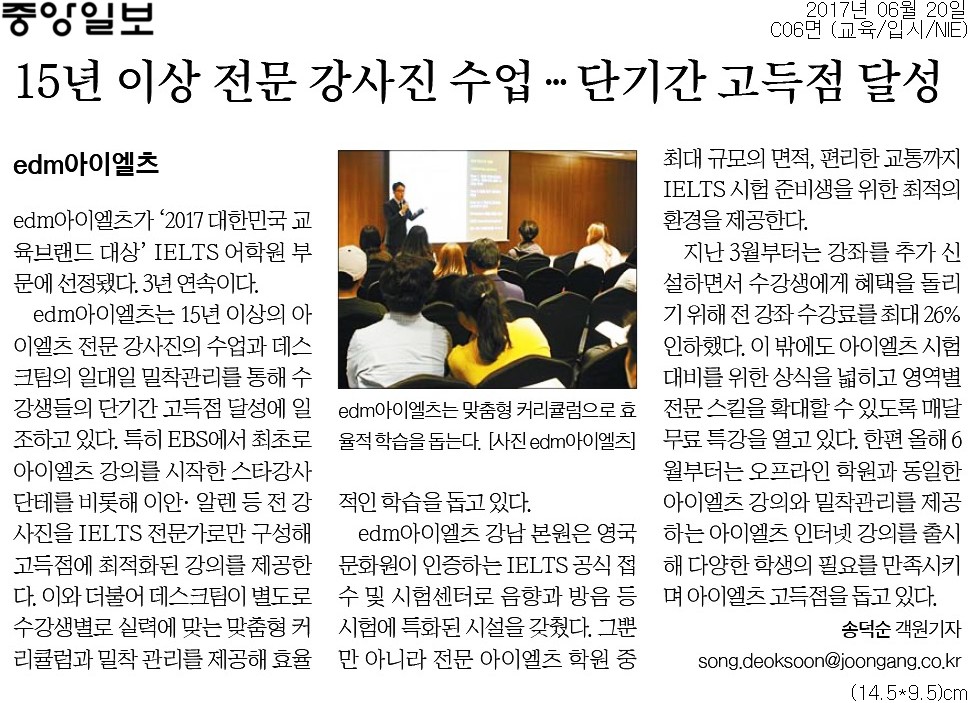 한편 올해 6월부터는 오프라인 학원과 동일한 아이엘츠 강의 및 밀착관리를 제공하는 아이엘츠 인강을 출시해 다양한 학생들의 필요를 만족시키며 아이엘츠 고득점을 돕고 있다.
