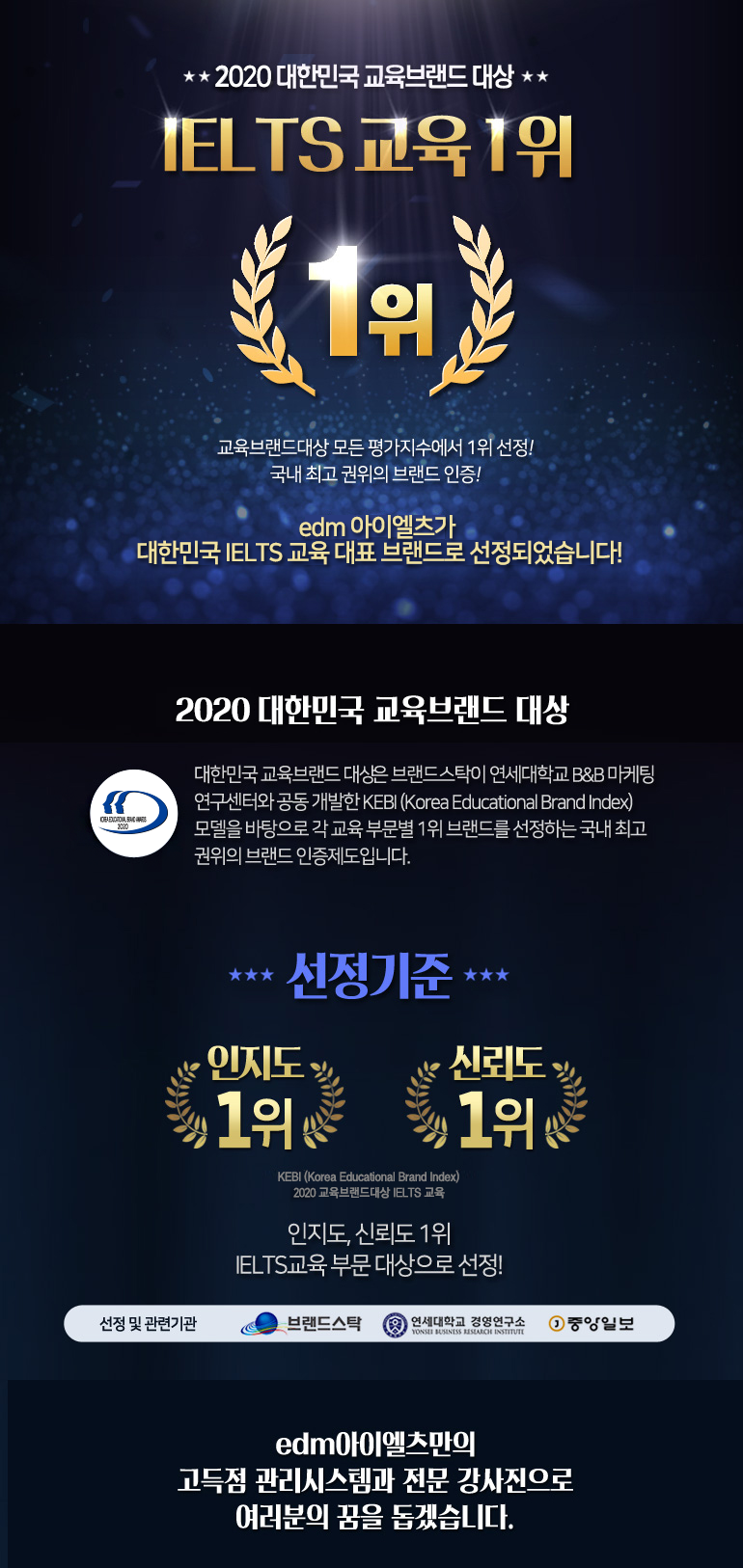 edm아이엘츠가 2015-2020 대한민국 교육브랜드 대상 IELTS교육 부문 1위를 6년 연속 수상했습니다.