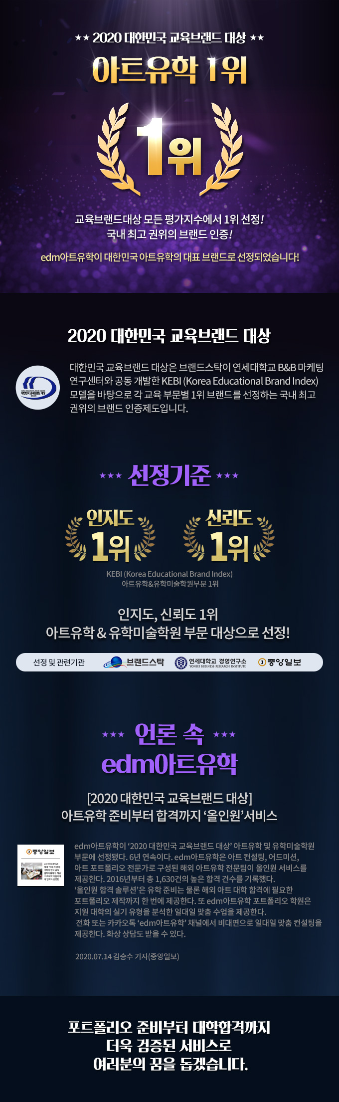 포트폴리오 준비부터 대학합격까지 더욱 검증된 서비스로 여러분의 꿈을 돕겠습니다.