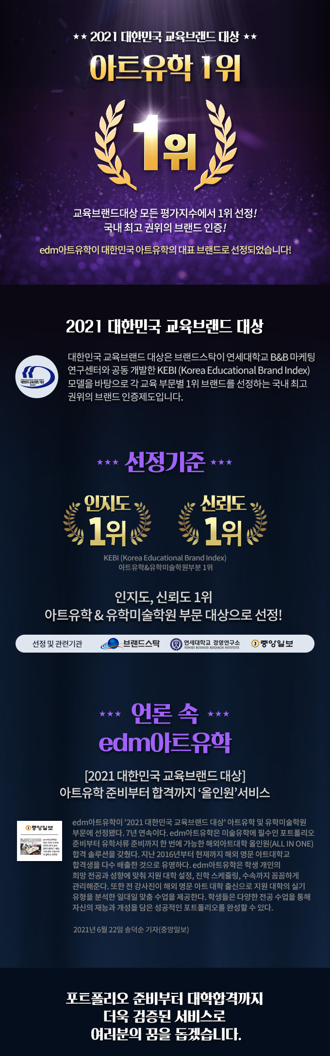 포트폴리오 준비부터 대학 합격까지 더욱 검증된 서비스로 여러분의 꿈을 돕겠습니다.