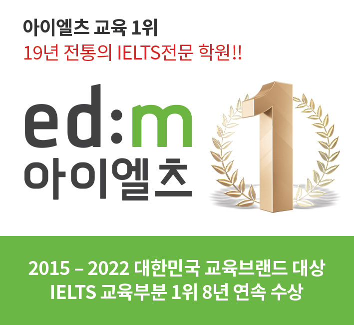 2015년- 2022년 "8년 연속" IELTS 1위 edm 에서는 앞으로도 좋은 강좌와 서비스로 여러분께 찾아뵙겠습니다.