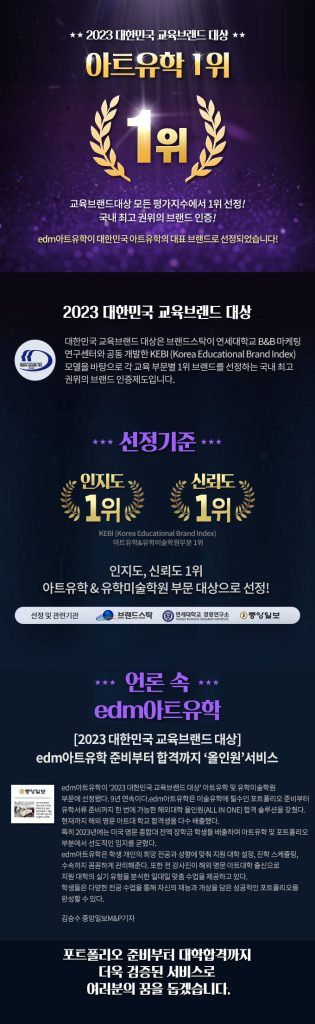 edm아트유학이 9년 연속 대한민국 대표 브랜드로 선정되었습니다!