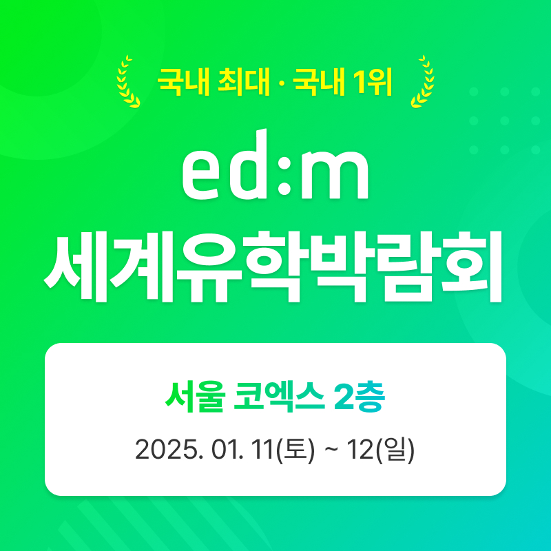 edm유학센터(대표 서동성)가 'edm세계유학박람회'를 서울 코엑스 2층 더플라츠에서 오는 11일(토)~12일(일)에 개최하며, 20여개 세션의 다양한 해외 대학 입시 전략 전문 세미나를 집중적으로 진행한다고 3일 밝혔다.