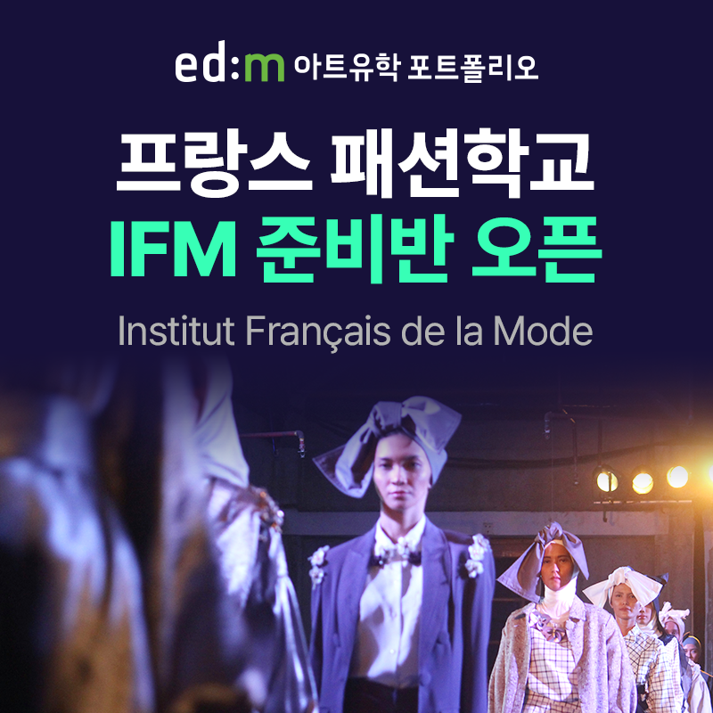 프랑스 패션 명문 학교 ‘IFM’ 입시 준비반에 대한 자세한 내용 확인 및 상담 신청은 edm아트유학 포트폴리오 홈페이지에서 하면 된다.