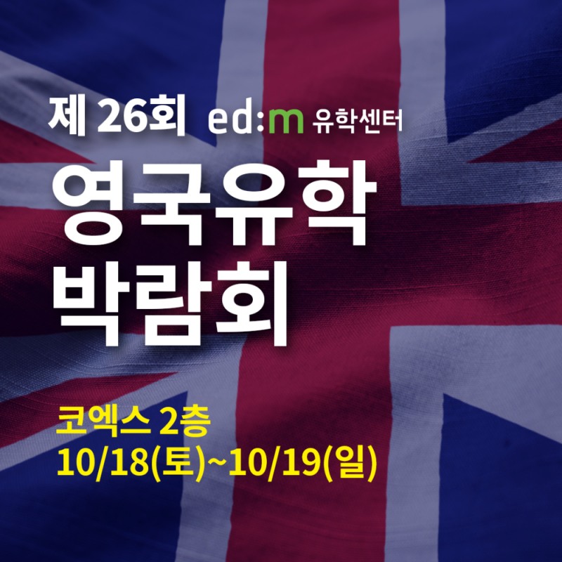 [글로벌에픽 황성수 CP] edm유학센터가 오는 10월 18일부터 19일까지 서울 코엑스 2층 더 플라츠에서 ‘제26회 영국유학박람회’를 개최한다고 밝혔다.