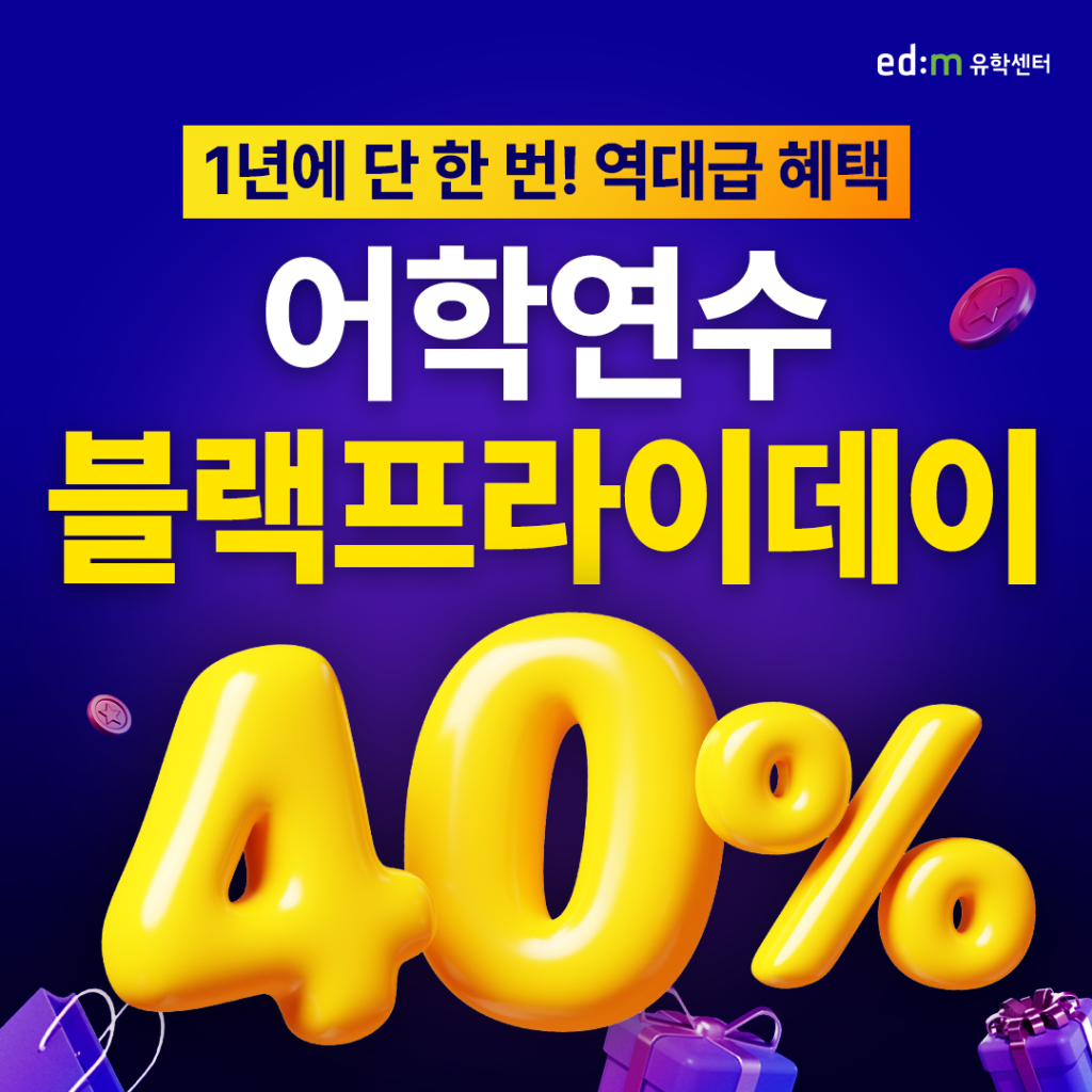 이번 블랙프라이데이 어학연수 프로모션과 참여 방법에 대한 자세한 내용은 edm유학센터 공식 홈페이지에서 확인할 수 있다.