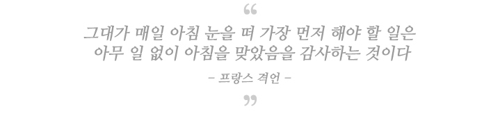 “사소한 것에 온 신경이 매몰된다면 행복의 크기는 제한될 것입니다”