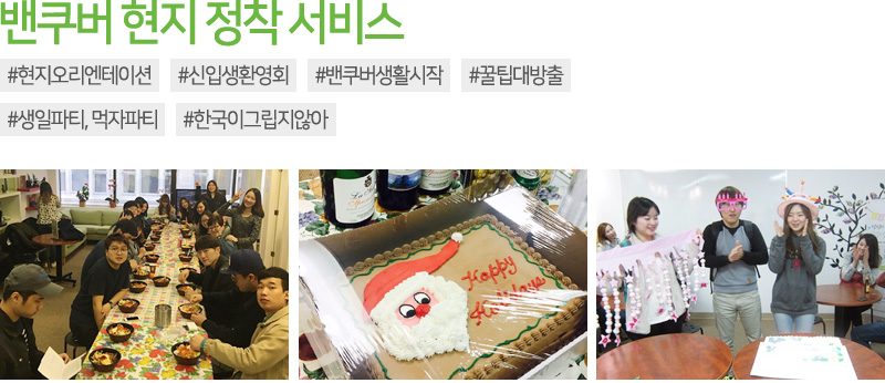 David : 저도 먹자파티를 꼽고 싶어요. 아무래도 유학을 오게 되면 한국 음식을 그리워하는 학생들이 많은데요. 저희 밴쿠버 글로벌센터에서는 매 달 다양한 종류의 한식을 직접 만들고 제공해서 학생들이 배부르게 먹고 재미있고 유익한 시간을 만들수 있도록 하고 있습니다. 이런 활동들을 통해 유학생들 사이에 유대감과 다양한 친목도모를 할 수 있어 인기 만점인 서비스 입니다.