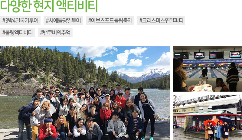 Claire : 여름이 아름다운 밴쿠버에서의 잊지 못할 추억을 학생들에게 남겨주기 위해 다양한 여름 액티비티를 준비 중입니다. 6월 BBQ 파티를 포함하여, 7월 소규모 워터파크 당일 여행도 계획하고 있으며, 올 가을에는 록키산맥 여행을 한 번 더 추진할 예정입니다.