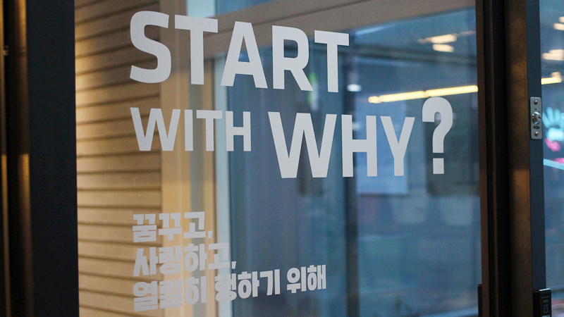 본사 입구에 붙어 있는 문구 ‘Start with why?’