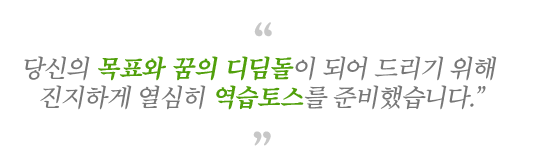 역습토스로 학습기간을 단축하고 학습자의 자신감을 상승 시키자는 바람으로 토익스피킹 강의를 론칭하게되었습니다.