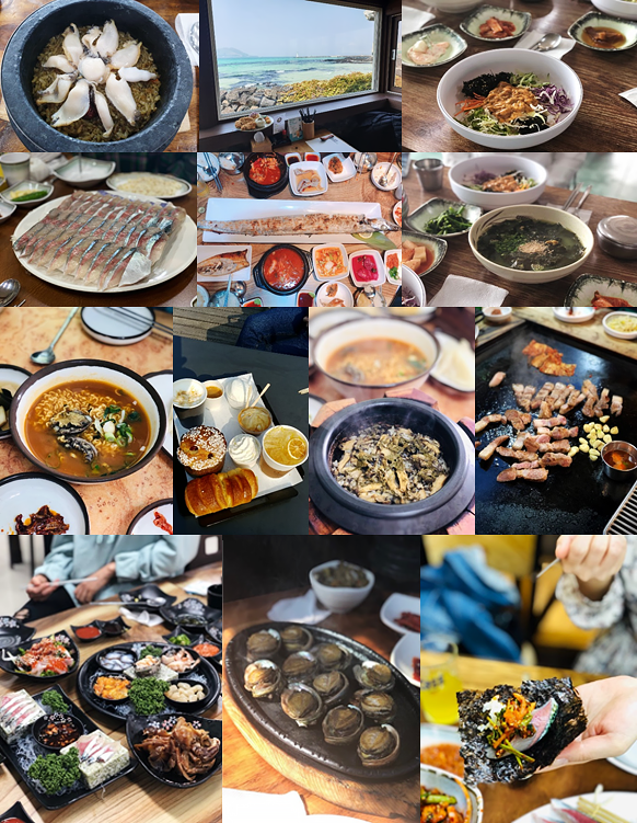 제주도하면 역시 !! 먹방이죠!! 전복돌솥밥, 흑돼지 삼겹살, 고등어 회, 성게 비빔밥, 갈치구이, 등등 음식 하나하나가 모두 주옥 같았습니다~!