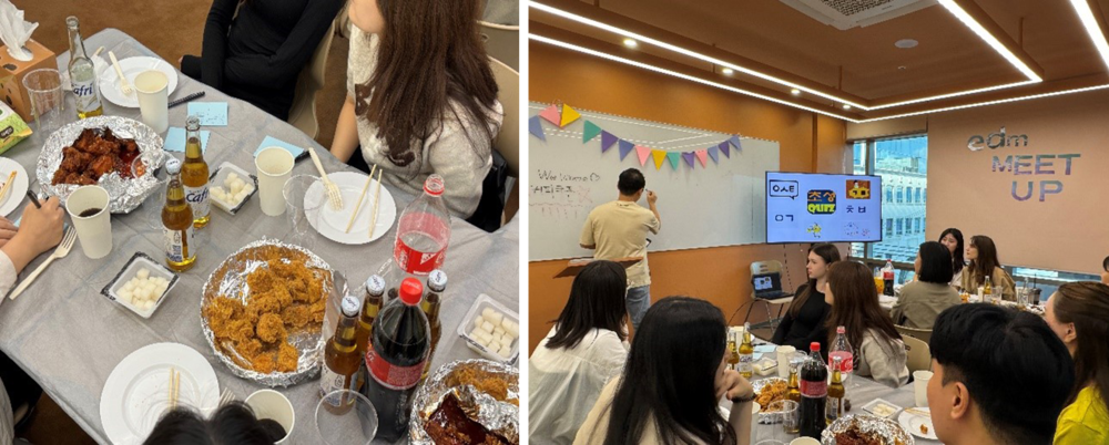 지난 9월 말, edm 글로벌캠퍼스 Meet-Up에서는 한국어를 배우는 외국인 학생들과 유학을 준비하는 이디엠아이엘츠의 한국인 학생들이 함께 만나는 행사가 진행되었습니다. 서로 언어 교환도 하고, 다양한 게임을 통해 소통하며 즐거운 시간을 보냈는데요. 특히 맛있는 치킨과 맥주가 가득 준비되어 입까지 즐거운, 부족함 없는 시간이었습니다.